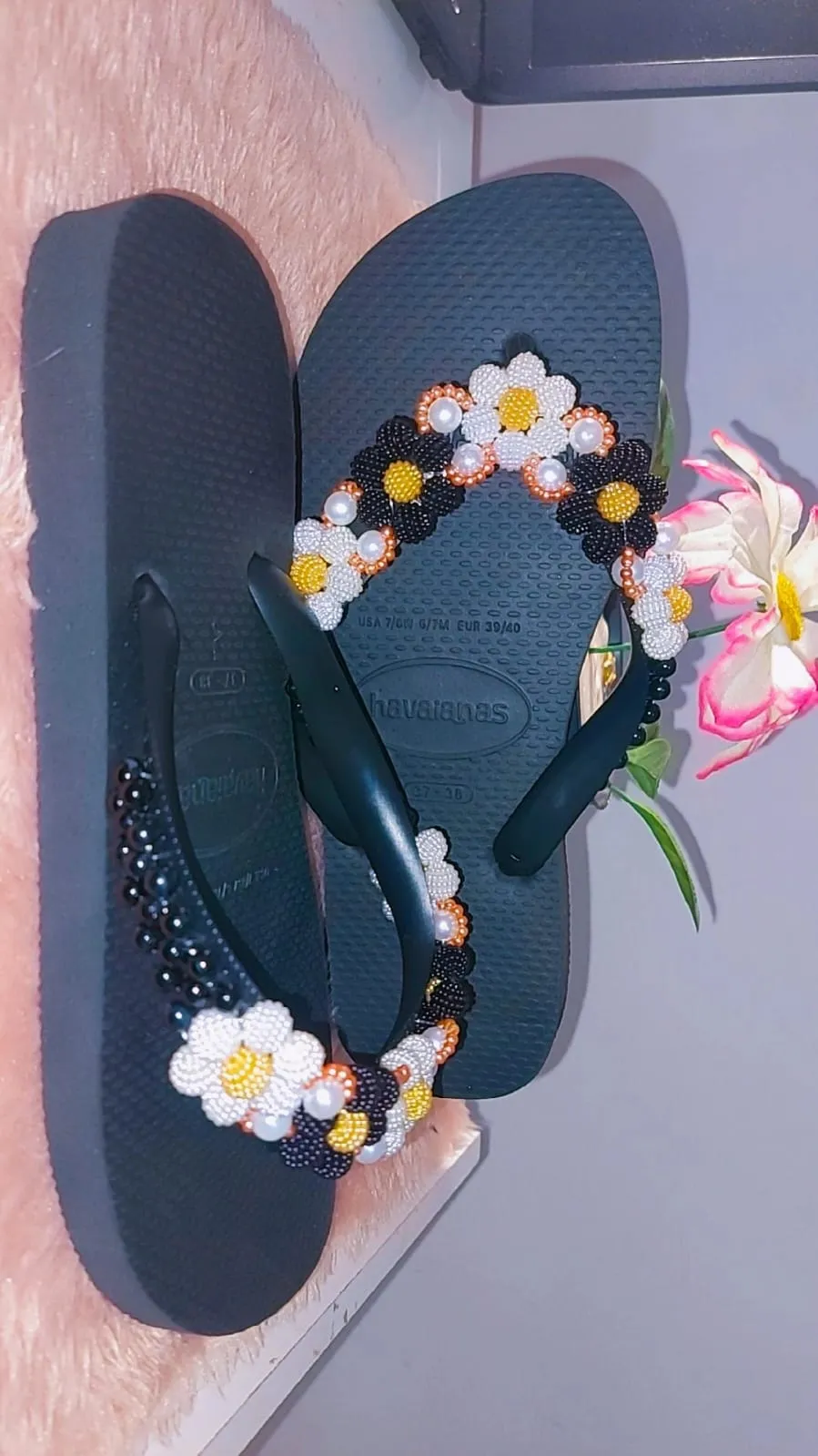 Com delicadas flores em preto e branco e detalhes em rose, esses chinelos não são apenas um calçado,mas uma verdadeira declaração de estilo.